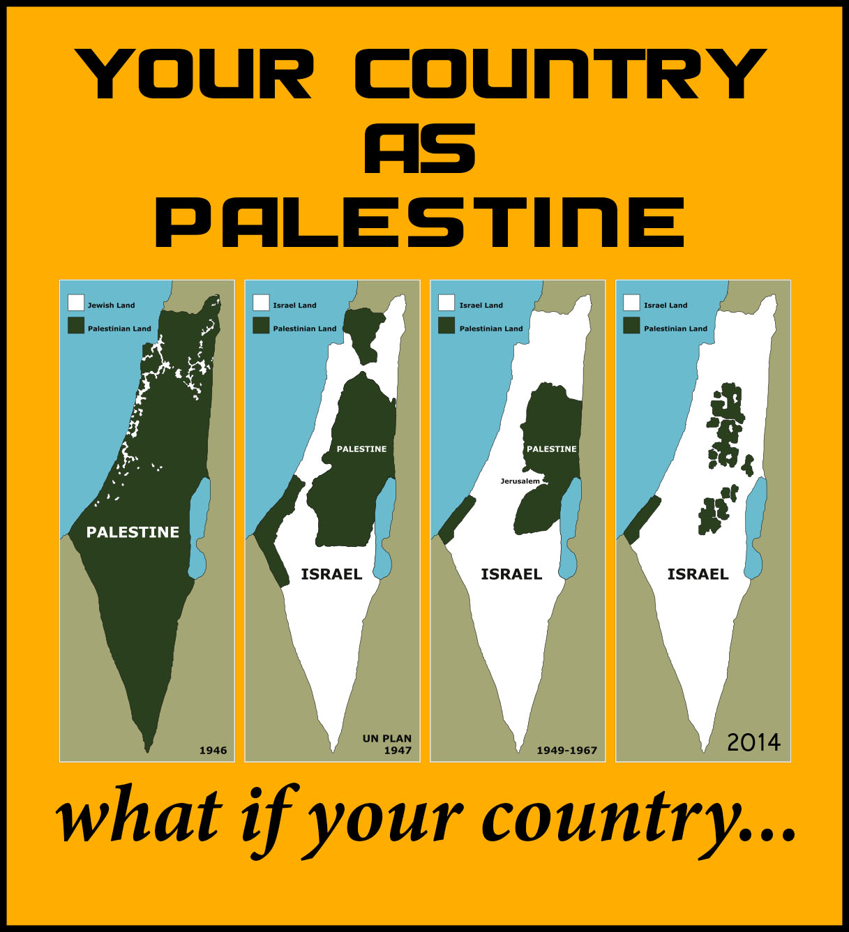و اشاره به روند اشغال سرزمین های فلسین توسط اسرائیل طی سالهای 1946 الی 2014 دارد